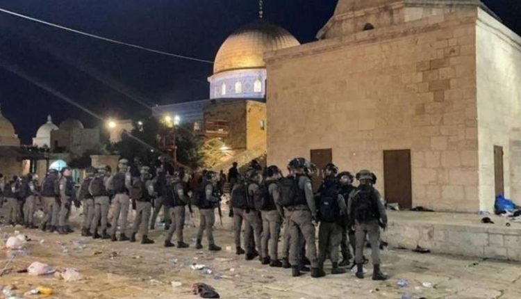 قوات العدو تمنع أذان المغرب في المسجد الأقصى
