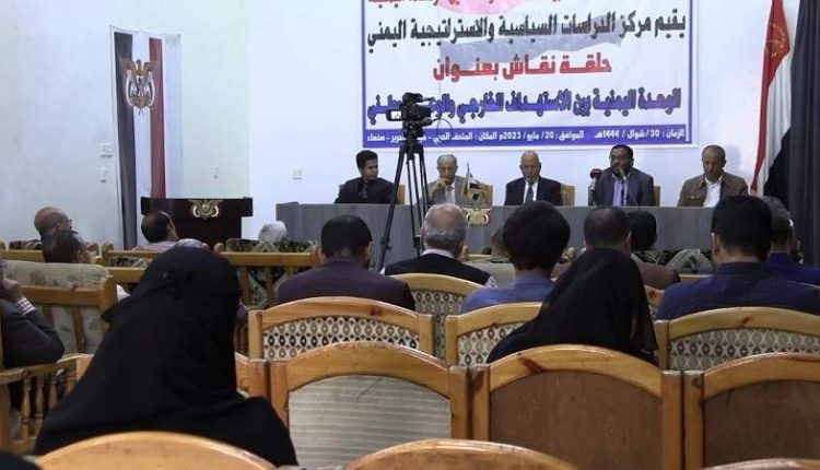 نظم مركز الدراسات السياسية والاستراتيجية اليمني في العاصمة صنعاء اليوم السبت، حلقة نقاشية بعنوان (الوحدة اليمنية بين الاستهداف الخارجي والوعي الوطني).