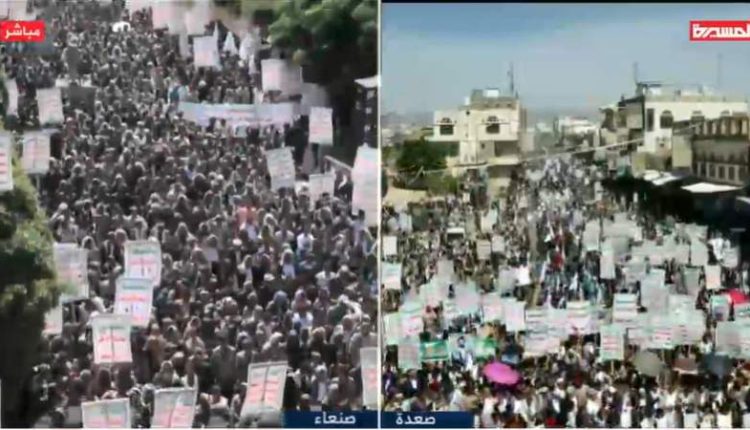 وفي محافظة صعدة خرجت المسيرات في 3 ساحات بالشارع العام في مدينة صعدة، ومديريات رازح وغمر وشدا في منطقة شعارة، ومديريات حيدان وساقين والظاهر في منطقة المرازم.