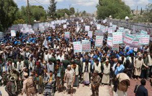 وردد المشاركون الشعارات والهتافات الساخطة والغاضبة إزاء جرائم أمريكا وإسرائيل بحق شعوب المنطقه المناهضة لمشروعهما التدميري والعدائي والمتآمر على العرب والمسلمين.