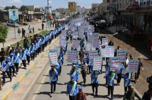 وفي المسيرة التي شارك فيها محافظ محافظة ذمار محمد ناصر البخيتي ومسؤول التعبئة العامة احمد الضوراني ووكلاء محافظة ذمار الدكتور فهد المروني وعباس العمدي ومحمود الجبين ومحمد عبدالرزاق ، رفع المشاركون اللافتات التي تعبر وتؤكد على البراءة من أعداء الله والصرخة في وجه المستكبرين.