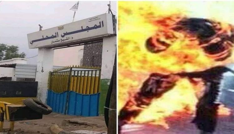 هذا المشهدُ لمواطنٍ أحرق نفسه، أمام المجلس المحلي في مديرية الشيخ عثمان في عدن المحتلة جنوب اليمن، والدوافعُ معلومةٌ بالضرورة توالي الأزمات، وفرضُ الأتاوات، واستحواذ الميلشيات المتصارعة على كل شيءٍ هنا.
