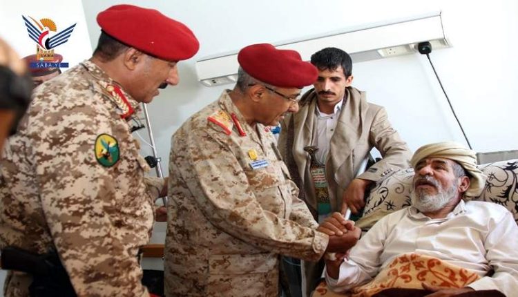 المفتش العام للقوات المسلحة يزور الجرحى في المستشفى العسكري بصنعاء