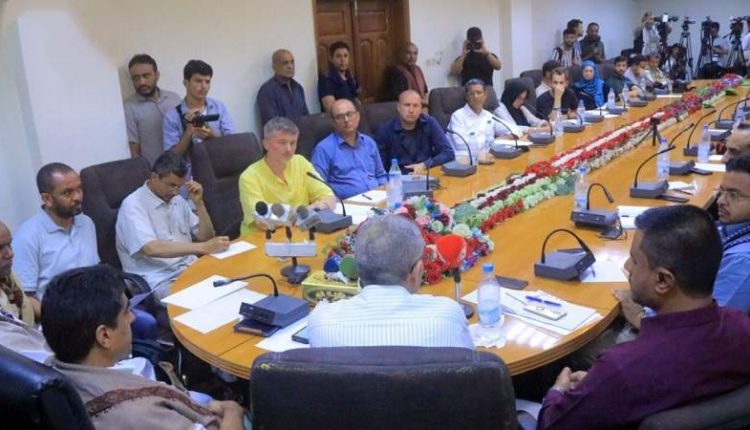 عقد بمحافظة الحديدة، اليوم السبت، لقاء ضم قيادتي السلطة المحلية ولجنة صافر وعدداً من الوفود الإعلامية الخارجية الزائرة لليمن لتغطية أعمال إنقاذ خزان صافر.