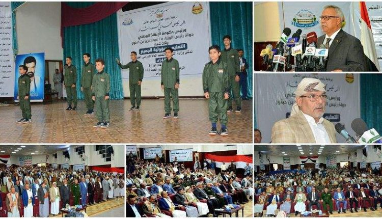وخلال التدشين قال رئيس الوزراء عبدالعزيز بن حبتور: “إن نشاطنا خلال الفترة القادمة سيتركز على قضايا التربية والتعليم استجابة لتوجه القيادة الثورية والسياسية”، مضيفاً: “سنقوم بتوجيه الكثير من إمكانات الدولة للنهوض بالقطاع التعليمي خلال الفترة القادمة”.