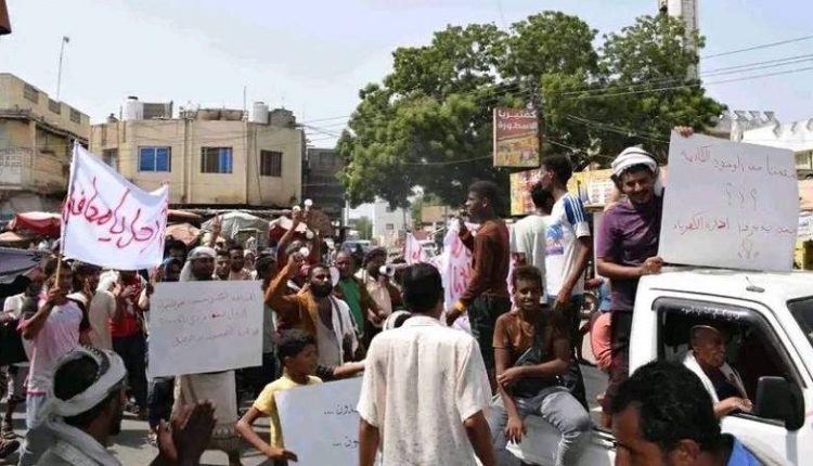 ورفع المواطنون المحتجون، شعارات تطالب برحيل المحافظ المعين من تحالف العدوان، وإسقاط حكومة المرتزقة ومجلسها “الرئاسي”.