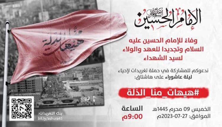 تنطلق في الساعة (09:00) مساء اليوم الخميس، حملة تغريدات على موقع التواصل الاجتماعي تويتر، إحياءً ذكرى عاشوراء.