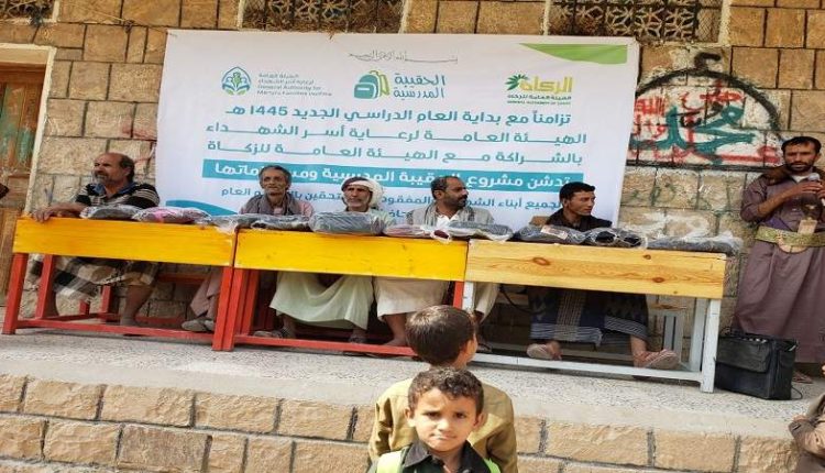دشن فرع الهيئة العامة لرعاية أسر الشهداء بمحافظة مأرب اليوم الأحد، بالشراكة مع الهيئة العامة للزكاة، مشروع توزيع الحقيبة المدرسية على أبناء الشهداء للعام الدراسي 1445هـ.