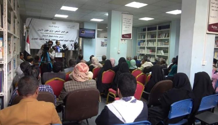 وفي الفعالية التي أقيمت بالعاصمة صنعاء، قال وزيـــر حقــوق الإنســـان علــي الــديلمــي، نرحب بدعوة الأمين العام للأمم المتحــدة بتشكيـل لجنـة تحقيــق دوليــة خــاصــة بحـالات الإخفــاء القســري فــي اليمــن، رغم مواقفها المتخاذلة.