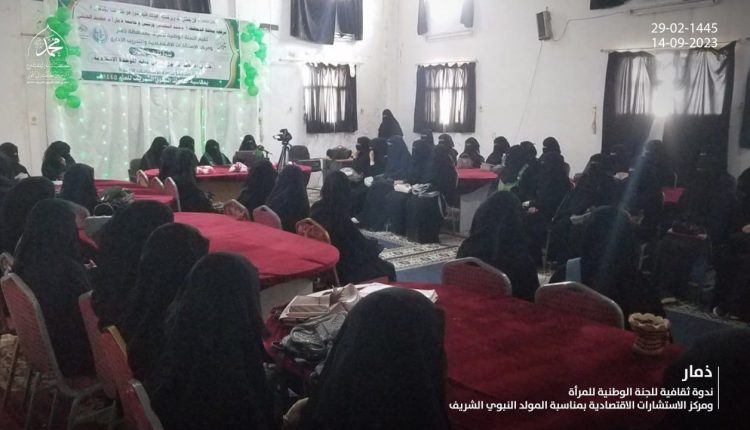 ندوة ثقافية لمركز الاستشارات الاقتصادية واللجنة الوطنية للمرأة بذمار، بذكرى المولد النبوي الشريف.