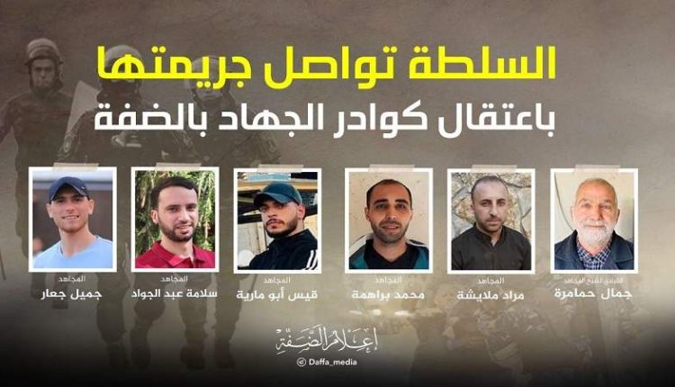 يشار إلى أن أجهزة أمن السلطة تواصل حملتها المسعورة في اعتقال وملاحقة قادة وكوادر حركة الجهاد الإسلامي في الضفة الغربية في جريمة مرفوضة وطنيًا وأخلاقيًا دون الكشف عن مصيرهم أو الإفراج عنهم.