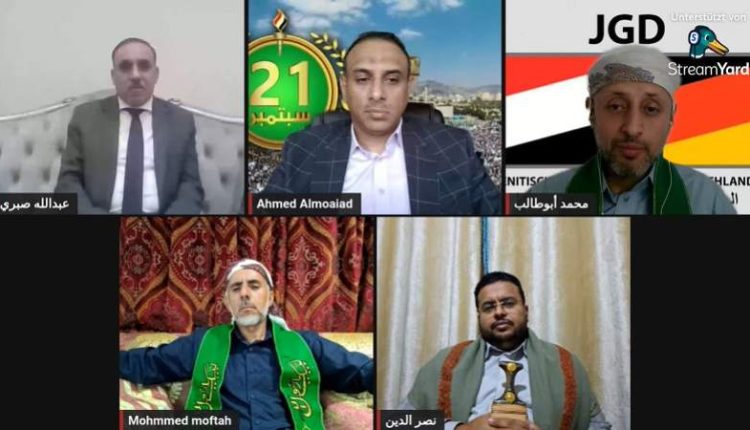 نظمت الجالية اليمنية في ألمانيا ندوة نقاشية – حوارية عبر دائرة تلفزيونية مغلقة بعنوان “صمود ثورة الحادي والعشرين من سبتمبر أمام المؤامرات”، تزامنا مع ذكرى المولد النبوي الشريف.
