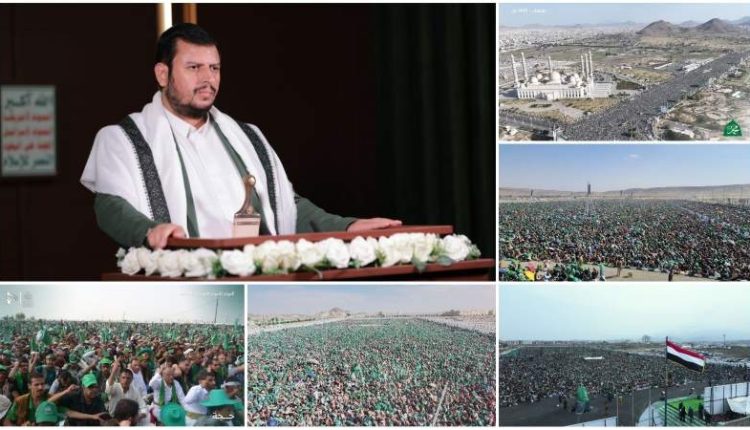 وفي مستهل خطابه، اليوم الأربعاء، أشاد السيد عبدالملك بالحضور الكبير والحشود المليونية المحتفية بالمولد النبوي الشريف، مخاطباً إياهم بقوله: “هكذا أنتم بإيمانكم ومحبتكم لرسول الله، نفسي لكم الفداء يا أهل الوفاء يا شعب الإيمان والحكمة”.