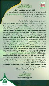 رفع قائد المنطقة العسكرية الرابعة، قائد اللواء 35 مدرع، اللواء عبداللطيف حمود المهدي، رسالة تهنئة وتبريك وشكر لكافة أبناء محافظة ذمار الأوفياء، ولكل من عمل في هذه المناسبة، وبذل جهده، ونظم، وأمن، وساهم، وحضر في إحياء هذه المناسبة العظيمة مولد رسول الله صلى الله عليه وآله وسلم ١٤٤٥ هـ، وأيد التغييرات الجذرية التي أعلنها السيد القائد / عبد الملك بدر الدين الحوثي (يحفظه الله).