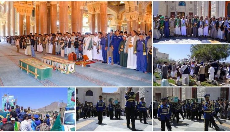 شُيع بصنعاء، اليوم الجمعة، جثمان المصور الإعلامي حذيفة على الوصابي الذي استشهد وهو يؤدي واجبه في تغطية الفعالية المركزية للمولد النبوي الشريف بميدان السبعين في العاصمة صنعاء.