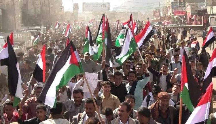 فيما أشار وكيل المحافظة، حسين المدحجي، في المسيرة التي شهدتها مدينة دمت، إلى استمرار دعم الشعب اليمني الكامل للشعب الفلسطيني حتى نيل كافة حقوقه المشروعة وإقامة دولته الفلسطينية وعاصمتها القدس الشريف.