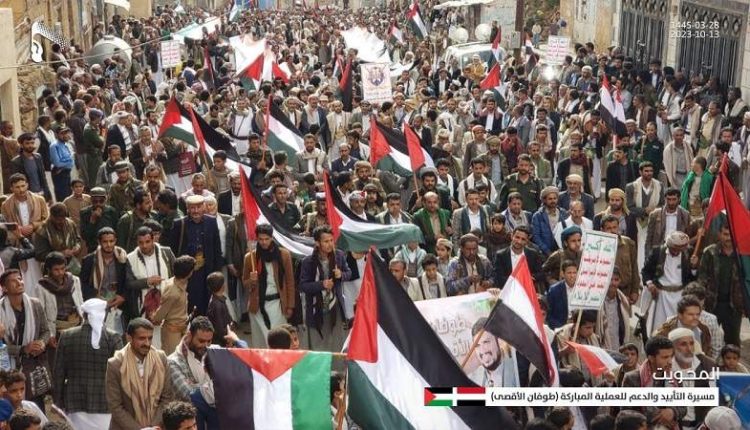 المحويت.. مسيرة جماهيرية حاشدة دعمًا وتأييدًا لعملية طوفان الأقصى