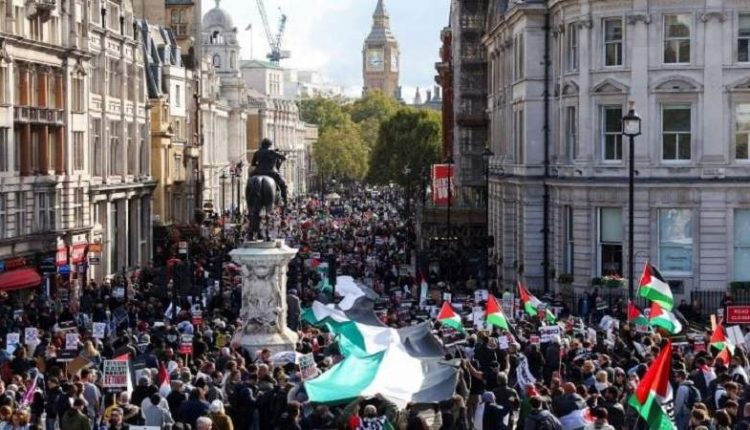 تظاهرة كبرى في لندن تنديداً بالعدوان الإسرائيلي على غزة