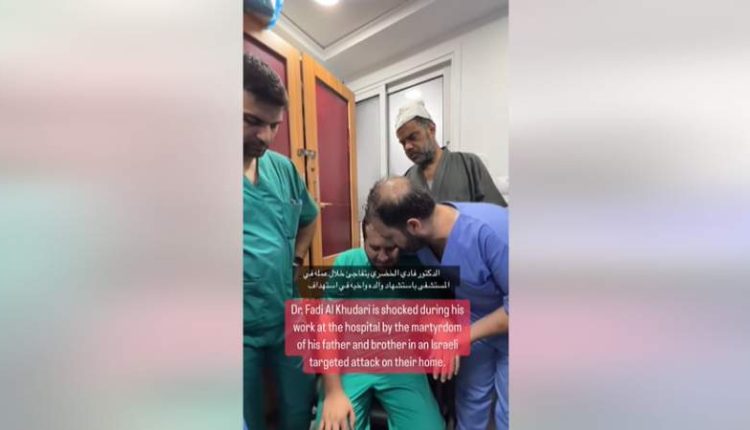 تفاجأ الطبيب الفلسطيني فادي الخضري خلال عمله بمجمع الشفاء الطبي باستشهاد والده وأخيه بقصف صهيوني غادر.