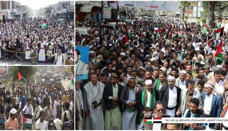 شهدت مدينتي إب ويريم ومديرية ذي السفال بمحافظة إب، اليوم عقب صلاة الجمعة ثلاث مسيرات جماهيرية تنديدا بجرائم العدو الصهيوني بحق الشعب الفلسطيني في قطاع غزة والأراضي المحتلة.