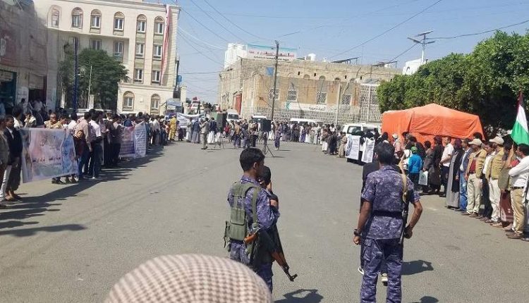حجة.. وقفة لمنتسبي القطاع الإنساني تنديداً بجرائم العدو الصهيوني في غزة