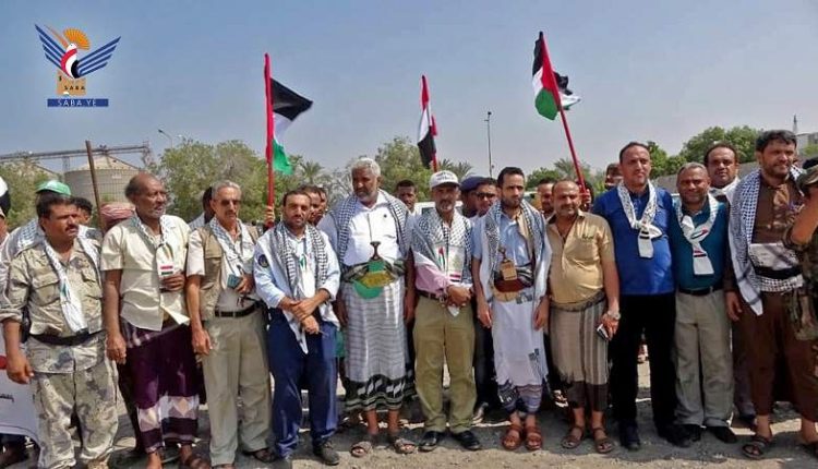 وأعلن المشاركون في الوقفة من منتسبي القطاعات العاملة بميناء الحديدة، تأييدهم لعمليات المقاومة الفلسطينية في غزة، وتفويضهم المطلق لقائد الثورة في اتخاذ كافة الخيارات المتاحة لتقديم الدعم والمناصرة العملية للأشقاء في فلسطين بما يسهم في ردع الكيان المتغطرس ووقف جرائمه.