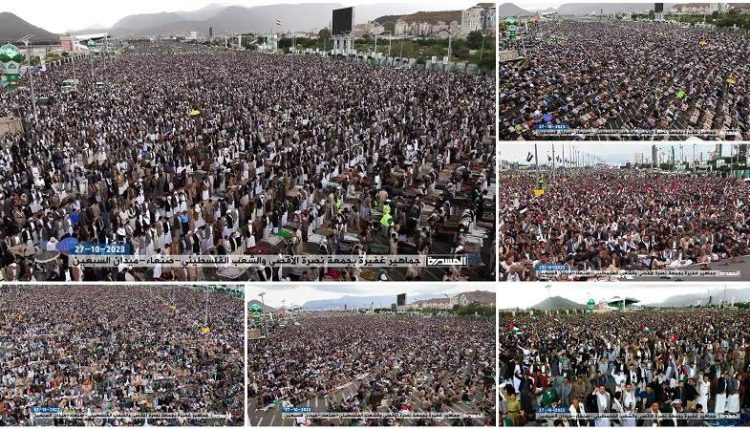 أدى مئات الآلاف صلاة الجمعة في ميدان السبعين أكبر ميادين العاصمة صنعاء تضامنا ونصرة مع الشعب الفلسطيني في قطاع غزة في مواجهة العدو الصهيوني.