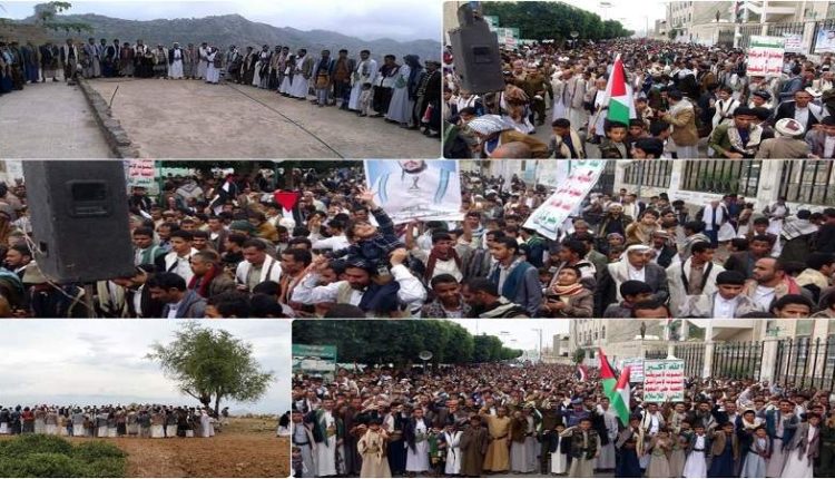 حجة.. مسيرة ووقفات حاشدة تنديداً بالجرائم الصهيونية في غزة