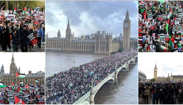 تظاهرة كبرى في لندن رفضاً للعدوان الإسرائيلي على غزة