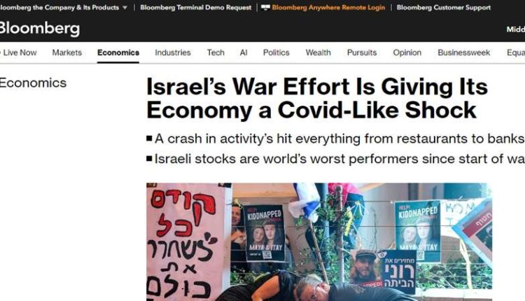 أفاد تقرير لوكالة “بلومبيرغ” أن الاقتصاد الإسرائيلي يتعرض لهزة شديدة بعد الحرب على قطاع غزة.