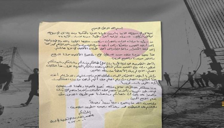وختمت الرسالة: “اضربوا منهم فوق الأعناق، واضربوا منهم كلَّ بنان، وكونوا على يقينٍ أنّ شهداءكم وشهداءنا هم طريق القدس، حتّى يوم الفتح المبين”.