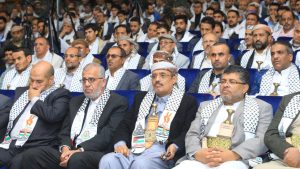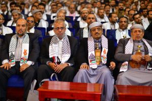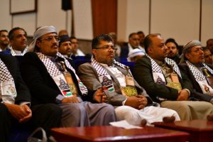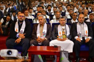 فيما حيت كلمة الفصائل الفلسطينية التي ألقاها ممثل حركة حماس في صنعاء معاذ أبو شمالة، قائد الثورة اليمنية السيد عبدالملك بدر الدين الحوثي واليمن قيادة وحكومة وشعبا على المواقف المميزة في دعم فلسطين وأهلها من خلال ضرب العدو الصهيوني بالرغم من بعد المسافات بين اليمن وفلسطين، ثم قطع شريان العدو التجاري والعسكري عبر البحر الأحمر حتى يوقف عدوانه على غزة.