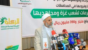 بدوره ثمن مستشار المجلس السياسي الأعلى – رئيس اللجنة العليا للحملة الوطنية لنصرة الأقصى العلامة محمد مفتاح، ما قدمته هيئة الزكاة لأبناء غزة اليوم من دعم مالي.