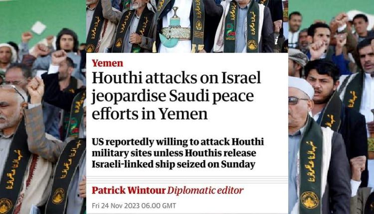وقالت صحيفة (Theguardian) البريطانية في تقرير، أن الخطط المتقدمة للسعودية للتوصل إلى اتفاق سلام مع أنصارالله في اليمن تتعرض للخطر بسبب ما وصفته بالهجمات على “إسرائيل” والاستيلاء على سفينة تجارية مرتبطة بـ”إسرائيل” في البحر الأحمر.