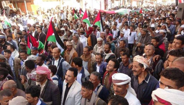 مسيرة حاشدة في المربع الجنوبي بإب تضامناً مع فلسطين وإحياء لذكرى الشهيد
