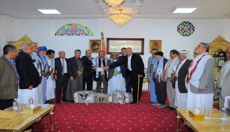 التقى رئيس مجلس النواب يحيى علي الراعي ونائباه عبد السلام هشول وعبدالرحمن الجماعي اليوم الأربعاء، رئيس وأعضاء اللجنة المركزية لجمع التبرعات للشعب الفلسطيني، وسلمهم مساهمة أعضاء المجلس، لدعم وإسناد الشعب الفلسطيني ومقاومته الباسلة.
