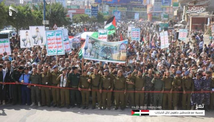 تعز.. مسيرة حاشدة لدعم كل الخيارات مع الشعب الفلسطيني