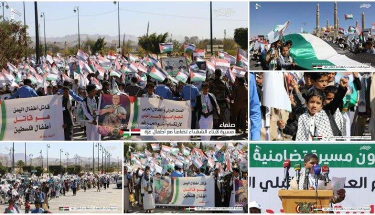 مسيرة بصنعاء للأطفال من أبناء الشهداء تضامناً مع أطفال غزة