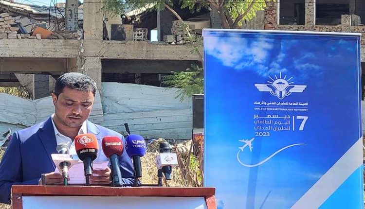 وقال “تأتي هذه المناسبة للمرة التاسعة على قطاع النقل الجوي بالجمهورية اليمنية في ظل توقف شبة كامل للقطاع وما يزال يخضع لإجراءات وقيود تعسفية وغير قانونية من قبل دول تحالف العدوان، بعد أن استهدفت ودمرت المطارات المدنية اليمنية، وحظرت شركات الطيران المدني من التشغيل بشكل ممنهج يُراد منه مضاعفة معاناة الشعب اليمني”.