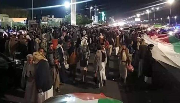 كما احتشد المواطنون عند (جولة فلسطين) عبر مقربة من ميدان السبعين، مرددين الأهازيج الشعبية المعبرة عن البهجة والسرور بموقف اليمن تجاه فلسطين.