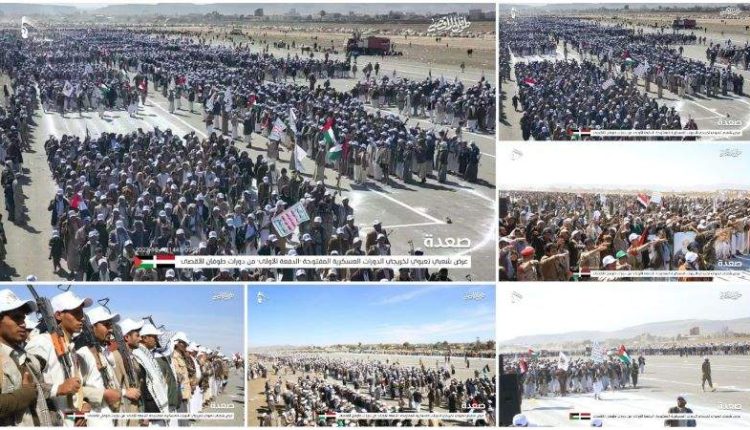 صعدة.. عرض شعبي تعبوي للآلاف من خريجي دورات طوفان الأقصى