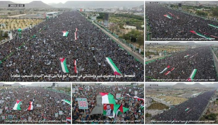 في اليوم الـ70 من المعركة.. طوفان بشري مليوني بميدان السبعين في صنعاء نصرةً لغزة