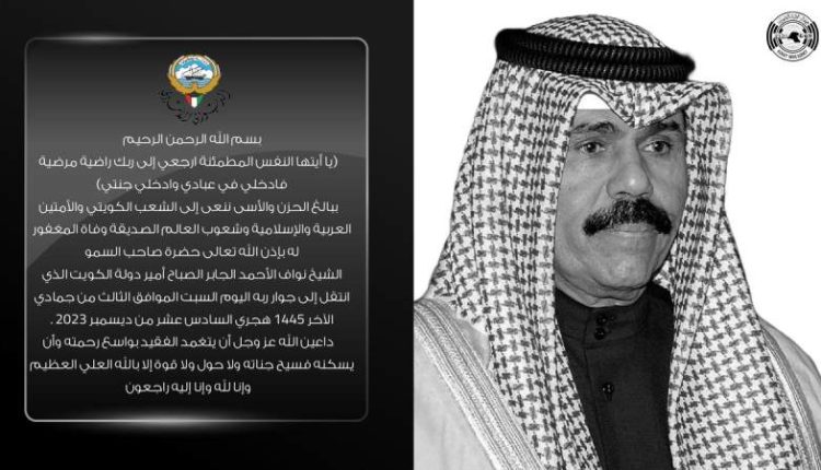 الديوان الأميري ينعى إلى الشعب الكويتي والأمتين العربية والإسلامية والعالم وفاة سمو أمير البلاد الشيخ نواف الأحمد الجابر الصباح