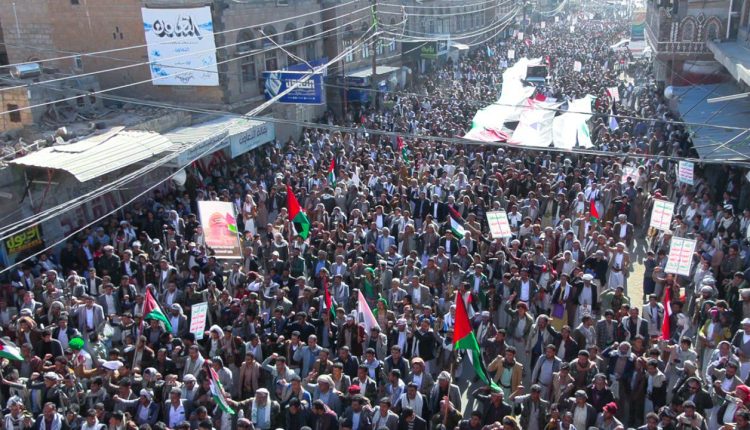 وخرجت المسيرة ببيان إستنكر حالة الخنوع والخذلان من قبل الأنظمة العربية والإسلامية تجاه ما يتعرض له الشعب الفلسطيني من مجازر وجرائم من قبل تحالف العدوان الصهيوأمريكي الغربي.