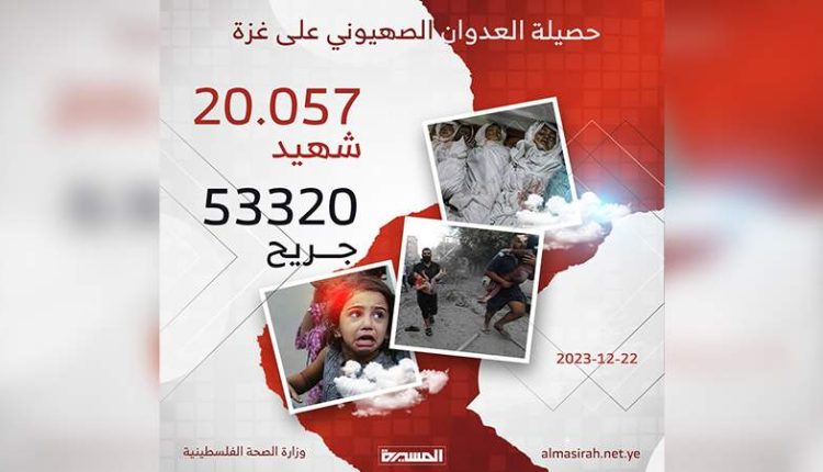 ارتفاع حصيلة ضحايا العدوان الصهيوني على غزة إلى أكثر من 20 ألف شهيد و53 ألف جريح