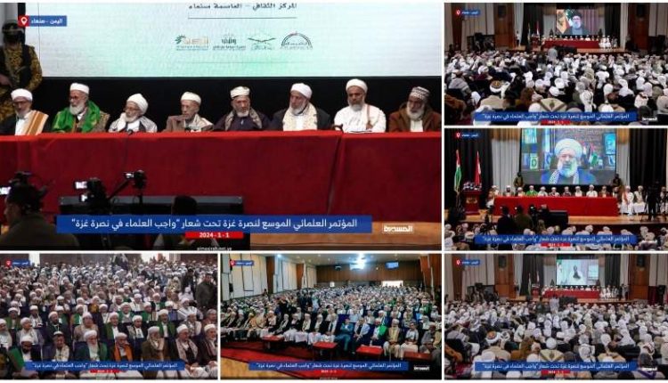 ودعا العلماء المجتمعين في مؤتمر علماء اليمن للوقوف إزاء العدوان الأمريكي الصهيوني على غزة وفلسطين، وتوحيد الكلمة والصف وتسخير الإمكانيات لطرد الأعداء والصهاينة واستعادة فلسطين والأقصى من الكيان الغاصب، وقال “ليس منا من العلماء من يقف مع العدو وممارساته وما يرتكبه من جرائم ومجازر بحق الفلسطينيين”.
