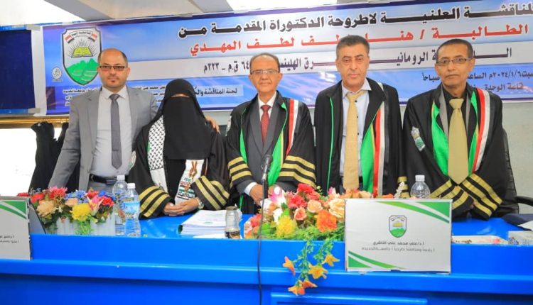وأشادت لجنة المناقشة والحكم برئاسة الأستاذ الدكتور عبدالودود قاسم مقشر، مناقشاً خارجياً جامعة الحديدة، والأستاذ الدكتور خلدون هزاع نعمان، عضواً ومناقشاً خارجياً _ جامعة ذمار، والأستاذ الدكتور منير عبد الجليل العريقي _جامعة إب، عضواً ومشرفاً، بالأطروحة المقدمة والمضامين التي تطرقت إليها الباحثة، وأقرت منحها درجة الدكتوراه بتقدير امتياز.