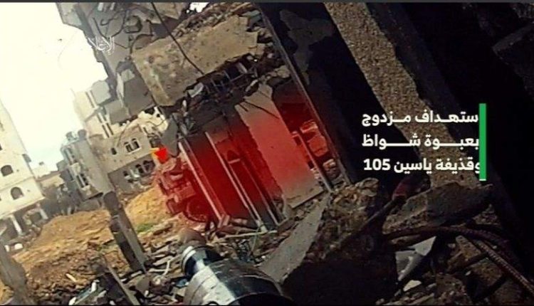 ونشرت الكتائب مشاهد قالت إنه “استهداف مزدوج لناقلة جند صهيونية بعبوة “شواظ” وقذيفة “الياسين 105″ على تخوم حي الشيخ رضوان بمدينة غزة”.