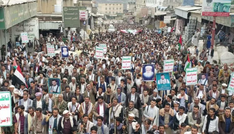 مسيرة جماهيرية بمديرية جبل الشرق تضامناً مع فلسطين وتنديداً بالتصنيف الأمريكي للشعب اليمني.