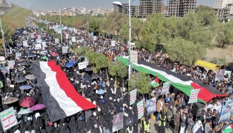نظمت قيادات وأكاديميو وطلبة جامعة صنعاء اليوم الأربعاء، مسيرة حاشدة تضامناً مع الشعب الفلسطيني ونصرة الأقصى وتنديداً واستنكاراً للمجازر الوحشية التي يرتكبها الكيان الصهيوني بحق أطفال ونساء غزة تحت شعار ” ثابتون مع فلسطين حتى النصر وأمريكا أم الإرهاب “.
